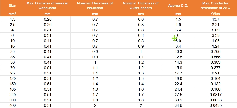 Conductor: Tinned soft copper wires, class 5, according to EN60228;